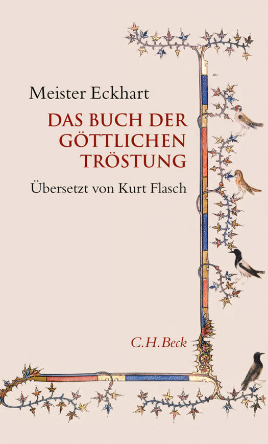 Der erste Teil des Traktats skizziert Eckharts Metaphysik. Er erklärt die Gottessohnschaft des Menschen als den wahren Grund der Tröstung. Der zweite Teil versammelt dreißig Trostgründe für die Bewältigung des Leids. Der kurze dritte Teil berichtet von Personen, deren gutes Beispiel mancherlei Trost gewähren kann. Eckhart selbst, aber auch seine Ankläger im Inquisitionsprozeß haben das Buch der göttlichen Tröstung eng verbunden mit der Predigt Vom edlen Menschen; diese Ausgabe bringt beide Texte. Dem mittelhochdeutschen Originaltext steht die Neuübersetzung von Kurt Flasch gegenüber. Der Leser gewinnt einen unmittelbaren Eindruck von der außergewöhnlichen Sprache Meister Eckharts.