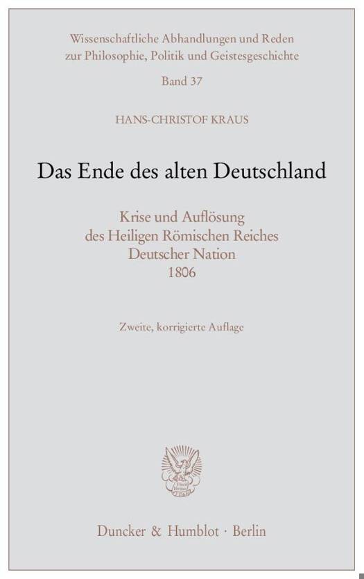 Bedenkt man die Bedeutung des Ereignisses als grundlegende politische und verfassungshistorische Zäsur der neueren deutschen Geschichte, dann hat der Untergang des Heiligen Römischen Reiches Deutscher Nation, der am 6. August 1806 mit der Niederlegung der Krone Karls des Großen durch den letzten Kaiser Franz II. erfolgte, in der Geschichtsschreibung und auch in der historisch-politisch interessierten Öffentlichkeit bis heute nur eine vergleichsweise geringe Aufmerksamkeit gefunden. Jedenfalls ist das Thema bisher kaum monographisch behandelt worden. Im zweihundertsten Jahr nach dem Ereignis sollen die schwere Krise und das im wesentlichen durch die Politik Napoleons herbeigeführte - freilich durch die eigensüchtige Politik Österreichs und Preußens seit langem vorbereitete - Ende des Reiches dem heutigen Leser noch einmal in knapper und übersichtlicher Form vergegenwärtigt werden, und zwar unter Berücksichtigung der wichtigsten neueren und neuesten Forschungen zur politischen und zur Verfassungsgeschichte des späten Reiches. Die Darstellung, die auch die Vor- und die Nachgeschichte des Reichsendes eingehend in den Blick nimmt, gelangt zum Ergebnis, daß das Alte Reich - allen älteren und neueren Reichsnostalgien zum Trotz - weder als politische Institution, noch als Verfassungsgebilde in der Zeit nach 1800 wirklich lebensfähig, sondern daß sein Ableben längst überfällig war. Der inner- und außerhalb Europas allgemein beschrittene Weg zum modernen Nationalstaat erforderte für Deutschland den Abschied vom Reich, der freilich sehr spät kam und im Bewußtsein vieler Deutscher des 19. und der ersten Hälfte des 20. Jahrhunderts eine ideelle "Leerstelle" hinterließ, die niemals wirklich ausgefüllt werden konnte und die deshalb in der Zeit des ersten Nationalstaats (1871-1945) immer wieder eine historische Belastung von nicht zu unterschätzender Bedeutung darstellte.