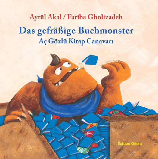 Keiner hat mehr etwas zu lesen. Denn ein riesiges Monster frisst alle Bücher auf, die es nur bekommen kann. Bunte Bilderbücher mag es am zwar liebsten, aber selbst Schulbücher und Akten aus Büros sind vor ihm nicht sicher. Irgendwer muss dem Monster erklären, dass man mit Büchern noch etwas anderes machen kann. Zweisprachig Türkisch-Deutsch