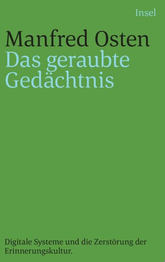 Manfred Osten beschreibt in seinem Essay erstmals die Geschichte des Vergessens als Teil der Kulturgeschichte, von den Anfängen bis zur Gegenwart, bis zur Problematik heutiger digitaler Speichersysteme, die das menschliche Gedächtnis entlasten sollen, zugleich aber auch immer fragiler werden und damit den fortschreitenden Verlust des kulturellen Gedächtnisses geradezu 'programmieren'.