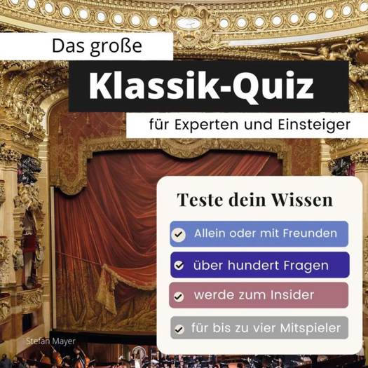 Wer wurde auch als der "Hamburgische Bach" bezeichnet? Aus welcher Operette ist das Lied "Berliner Luft"? Welcher italienische Komponist schrieb die Oper: "Die Puritaner" (1835)? Konntest Du diese Fragen beantworten? Bist du ein wahrer Insider?Willst Du noch mehr lernen?Willkommen bei diesem außergewöhnlichen Quizbuch. Verbessere spielerisch dein Wissen und lerne nebenbei beim Quizzen alles über deine große Leidenschaft. Dieses Buch beinhaltet liebevoll ausgewählte Quizfragen von relativ einfach bis ziemlich schwer. Und das Beste an diesem Buch: Du kannst es mit bis zu drei Freunden und deiner Familie gleichzeitig spielen. Jeder kann seine Ergebnisse eintragen und dann anschließend im Lösungsbogen hinten überprüfen, wer richtig lag. Jetzt einfach noch die Punkte zusammenzählen und den Quizkönig oder Königin prämieren. Viel Spaß!- Bilder-Booklet in großem, quadratischem Format: 21 x 21 Zentimeter- Lichtbeständiger Druck auf mattem Papier- Softcover in Premium-Papier mit Filmlaminierung- Die perfekte Geschenkidee: ob zum Geburtstag, zu Weihnachten oder als kleine Geste zwischendurch- Dieses preiswerte Buch wird umweltschonend in Europa gedruckt