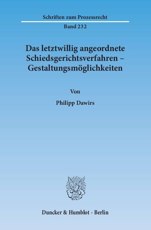 1025 ff. ZPO nahezu unumgänglich erscheint. Daher zeigt der Autor Lösungsmöglichkeiten auf, die Anregungen hinsichtlich der Erstellung einer Schiedsordnung für letztwillig angeordnete Schiedsgerichtsverfahren geben.