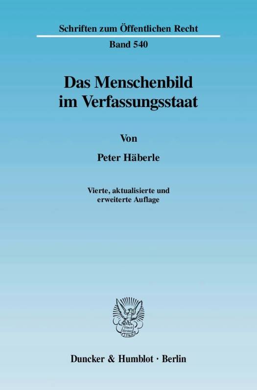 Peter Häberle, einer der führenden Staatsrechtslehrer, promovierte 1961 nach seinem Studium der Rechtswissenschaften in Tübingen, Bonn, Freiburg/Br. und Montpellier über das Thema "Die Wesensgehaltsgarantie des Art. 19 GG" (3. Aufl. 1983). Nach der Habilitation 1969 in Freiburg wurde er in Marburg zum o. Professor ernannt. Über Augsburg kam er später nach Bayreuth. Häberle widmet sein wissenschaftliches Wirken vermehrt der als Kulturwissenschaft begriffenen vergleichenden Verfassungslehre. Fast 20 Jahre lehrte er als ständiger Gastprofessor für Rechtsphilosophie in St. Gallen. Sein Werk umfasst 35 Bücher sowie ca. 250 Aufsätze, Übersetzungen in 18 Sprachen. Peter Häberle ist Ehrendoktor der Universitäten Thessaloniki, Granada, Lima, Brasilia und Lissabon sowie Großoffizier der Republik Italien und Mitglied zahlreicher nationaler und internationaler Akademien (zuletzt Argentinien). 1998 wurde er mit dem Max-Planck-Forschungspreis ausgezeichnet.
