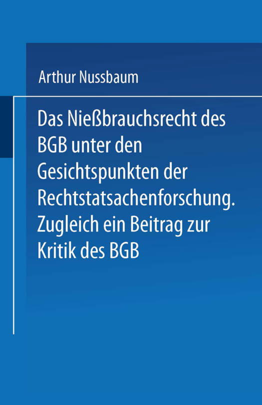 Das Niessbrauchsrecht Des Bgb. Unter Den Gesichtspunkten Der Rechtstatsachenforschung