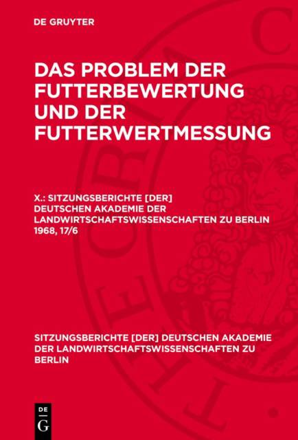 Das Problem Der Futterbewertung Und Der Futterwertmessung. X.