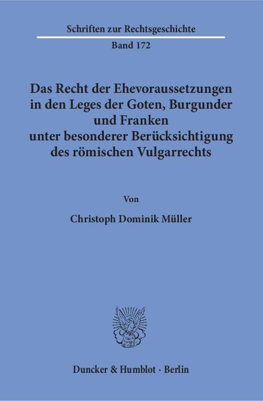 Das Ziel der vorliegenden Arbeit ist es, über eine Darstellung des Rechts der Ehevoraussetzungen in den Leges des 4. bis 6. Jh. einen Beitrag zu der Frage zu leisten, in welcher Gestalt das römische Recht im ehemaligen Westreich fortgalt. Da die Leges bedeutenden Stimmen der rechtshistorischen Forschung zufolge wichtige Quellen des sog. Vulgarrechts sind, wird die Berechtigung dieser Ansicht hinterfragt und anhand des untersuchten Gebiets der Ehevoraussetzungen überprüft, ob sich in den Leges tatsächlich vulgarrechtlicher Einfluss zeigt. In diesem Zusammenhang wird auf Grundlage der untersuchten Quellen die Frage aufgeworfen, ob es Vulgarrecht als solches überhaupt gibt. Die Betrachtung der Quellen lieferte hierbei keinen tragfähigen Beleg für Vulgarrecht. Vielmehr konnte festgestellt werden, dass sowohl römisch beeinflusste Normen der Leges als auch solche ohne römisches Vorbild Ausdruck einer wachsenden germanischen Herrschergewalt sind, die sich im ehemaligen Westreich etabliert hatte.