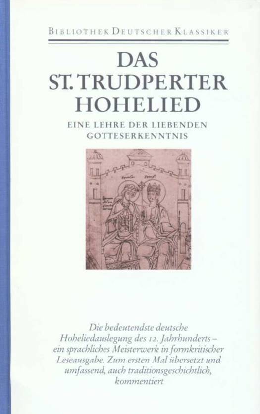Das Hohelied des Alten Testaments ist eine Liebesdichtung, die von Gut und Böse, auch von Gott nichts weiß. Die christliche Theologie hat die Aneignung dieses Buches voll leidenschaftlichen Verlangens in einem über tausend Jahre währenden Prozeß vollzogen: in einem Kraftakt der radikalen Überwindung seines ursprünglich weltlichen Charakters. Das 12. Jahrhundert ist eine Zeit neuer Frömmigkeit von schöpferischer Frische. Die Unerschöpflichkeit der Gottesliebe wird dieser Zeit zum zentralen religiösen Thema. Diesem Thema hat sich auch der Autor des St. Trudperter Hohenliedes verschrieben, der frühesten rein volkssprachigen, vollständigen Auslegung des Hohenliedes aus dem Mittelalter. In der formkritischen Leseausgabe von Friedrich Ohly wird dieses sprachliche Meisterwerk in seinen Strukturen durchsichtig, zum ersten Mal ist es hier übersetzt und umfassend kommentiert.
