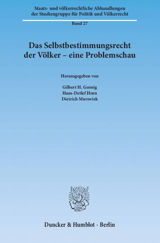Das Selbstbestimmungsrecht der Völker hat sich zur Leitidee des nicht mehr absolut staatszentrierten, allmählich demokratisch werdenden Völkerrechts entwickelt. Die Staaten sind zwar die Bausteine der Völkerrechtsordnung geblieben. Aber für das Völkerrecht ist es nicht mehr gleichgültig, wie der Status zustande kommt, der den Staat ausmacht: Über ihren politischen Status - ihren Territorialstatus, ihren Verfassungsstatus - entscheiden die Völker selbst. Die Erstarkung des Selbstbestimmungsrechts zum Rechtsprinzip hat freilich an der Souveränitätsfixierung des Völkerrechts nichts geändert. Die Zuordnung der staatlichen Souveränität, insbesondere des Anspruchs der Staaten auf Achtung ihrer territorialen Integrität, zum Selbstbestimmungsrecht der Völker wirft in der Praxis immer wieder Probleme auf, ist aber auch in der Theorie keineswegs in jeder Hinsicht geklärt. Ziel dieses Bandes, der auf einer Tagung der Studiengruppe für Politik und Völkerrecht gehaltene Vorträge versammelt, ist es, die rechtssystematischen, historischen und politischen Grundlagen unter Berücksichtigung der neuesten Entwicklungen zu vergegenwärtigen und offene Probleme anhand ausgewählter Problemfelder in den Blick zu nehmen.