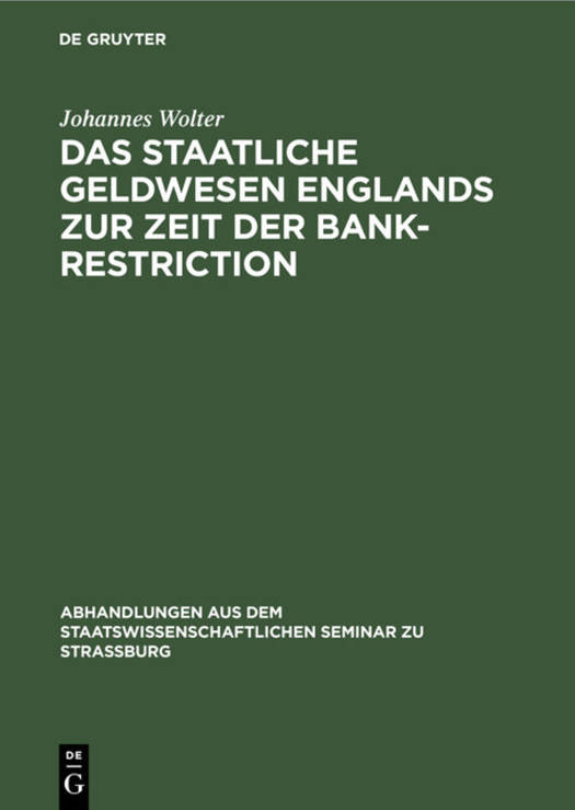 Das Staatliche Geldwesen Englands Zur Zeit Der Bank-Restriction
