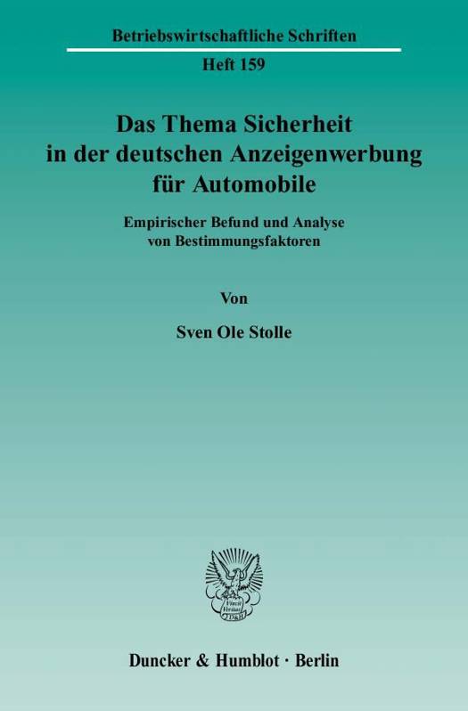 Eine deskriptive Analyse der deutschen Automobilwerbung macht den ersten Problemkreis des Autors aus. Anhand einer Inhaltsanalyse werden die folgenden Fragen beantwortet: Welchen Stellenwert nimmt das Thema Sicherheit in der deutschen Anzeigenwerbung für Automobile ein? Wie wird das Thema Sicherheit formuliert? Die Antworten begründen einen empirischen Befund, der eine Lücke in der deskriptiven Werbeforschung schließt. Der zweite Problemkreis geht über eine Bestandsaufnahme der Botschaftsgestaltung hinaus. Anhand von Zweckmäßigkeitsüberlegungen werden rund 50 Hypothesen über Gründe für die vorgefundene Gestaltung der Werbebotschaften abgeleitet.