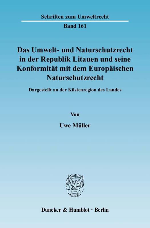 Durch die Berücksichtigung des Umfeldes des Umwelt- und Naturschutzrechts konnten auch ökologische Belange durch eine vergleichende Landschaftsanalyse des litauischen Küstenraumes einbezogen werden. Im ersten Teil der Arbeit geht Uwe Müller auf den litauischen Beitrittsprozess zur EU, die Probleme im gesellschaftlichen und umweltpolitischen Bereich sowie die Konformitätsanforderungen nach der FFH-RL ein. Im zweiten Teil erfolgt die Darstellung der litauischen Küstenregion im Vergleich zur Region um die Darß-Zingster-Bodden in Mecklenburg-Vorpommern, bevor die Umsetzung der Anforderungen aus den Anhängen der FFH- und VS-RL dargestellt und bewertet wird. Anschließend erfolgt im dritten Teil die Darstellung und Bewertung des litauischen Umwelt- und Naturschutzrechts und seiner Konformität mit der FFH- und VS-RL. Dabei bezieht der Autor auch die Verfassung und die Staatsorganisation als Bezugspunkt für die Bewertung ein.