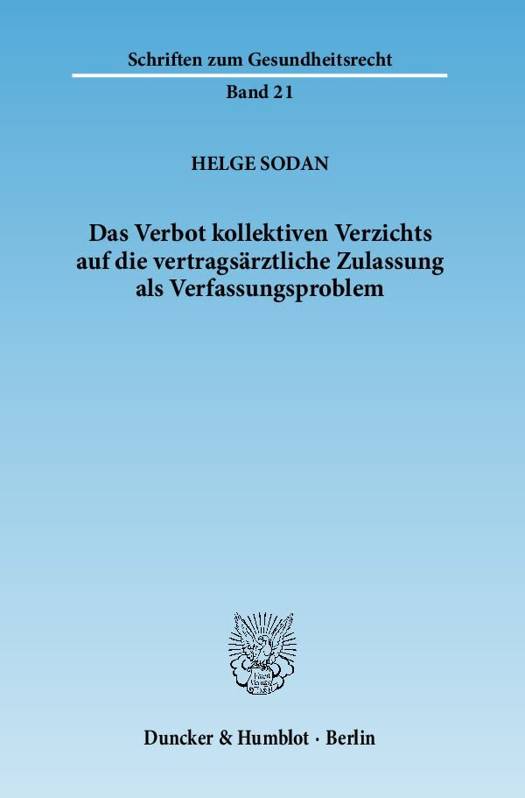 Weil die Vorschrift bereits praktische Bedeutung erlangte, ihre Verfassungsmäßigkeit aber noch nicht abschließend geklärt ist, widmet sich die Untersuchung ausführlich den einschlägigen Verfassungsfragen. Nach einer Erörterung der Voraussetzungen für ein abgestimmtes Verfahren oder Verhalten von Vertragsärzten zeigt die Arbeit schwerwiegende verfassungsrechtliche Einwände gegen das Verbot kollektiven Verzichts, die Wiederzulassungssperre, die Vergütungsregelungen und die nachwirkenden negativen Rechtsfolgen auf.