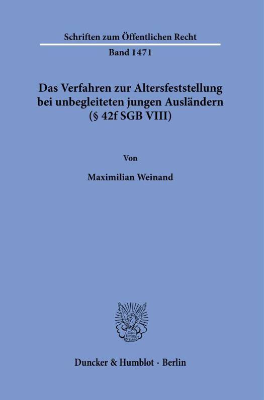 Das Verfahren zur Altersfeststellung bei unbegleiteten jungen Auslandern gemaa 42f SGB VIII wurde im Jahr 2015 im Zusammenhang mit der sog. Fluchtlingskrise kodifiziert. Die Arbeit stellt zunachst die einfachgesetzliche Rechtslage dar und untersucht in diesem Zusammenhang verschiedene rechtliche Fragestellungen. Im Anschluss erfolgt eine umfassende Prufung der Verfassungskonformitat von 42f SGB VIII, wobei der Schwerpunkt auf der Vereinbarkeit von radiologischen Untersuchungen zum Zwecke der Altersschatzung mit dem Recht auf korperliche Unversehrtheit liegt. Dabei wird auch auf die Bedeutung fiskalischer Erwagungen zur Rechtfertigung von Grundrechtseingriffen eingegangen. Zusatzlich wird untersucht, ob die Vorschrift auch mit den einschlagigen europa- und volkerrechtlichen Vorgaben vereinbar ist. Abschlieaend wird ein Vorschlag de lege ferenda unterbreitet, der Handlungsbedarf fur den Gesetzgeber aufzeigt.