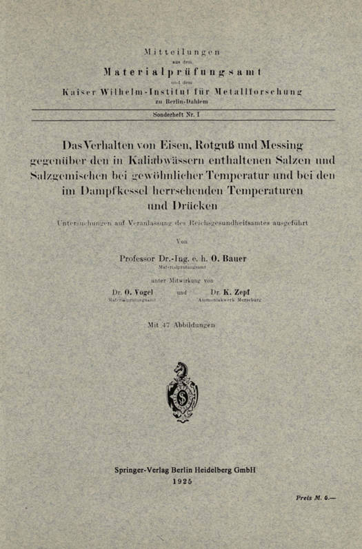 Das Verhalten Von Eisen, Rotguß Und Messing Gegenüber Den in Kaliabwässern Enthaltenen Salzen Und Salzgemischen Bei Gewöhnlicher Temperatur Und Bei Den Im Dampfkessel Herrschenden Temperaturen Und Drücken