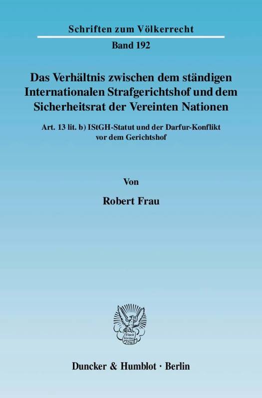 Robert Frau legt eine umfassende Analyse vor, die alle mit einer Überweisung nach Art. 13 lit. b) IStGH-Statut zusammenhängenden Rechtsfragen berücksichtigt. Die Voraussetzungen, die das Recht der Vereinten Nationen und das Recht des IStGH an eine Überweisung stellen, werden ausführlich hergeleitet. Einen Schwerpunkt bildet dabei die Definition einer »Situation«, ein bislang vernachlässigter Begriff, der die Reichweite der gerichtlichen Zuständigkeit bestimmt. Im zweiten Hauptteil widmet sich der Verfasser der Systematisierung der Rechtsfolgen einer solchen Überweisung, bevor in Anlehnung an die Tadic'-Rechtsprechung des Jugoslawientribunals eine Kompetenz des IStGH zur Überprüfung seiner eigenen Gerichtsbarkeit bejaht wird.