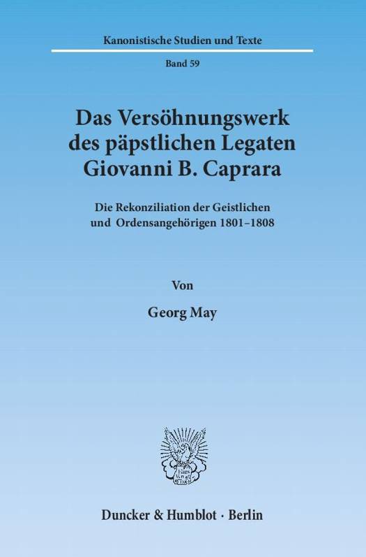 In den Archives Nationales zu Paris liegen Tausende von Bittschriften französischer Priester und Ordensleute beiderlei Geschlechts, in denen der vom Papst nach Frankreich entsandte Legat Caprara angegangen wurde, um mit Gott und der Kirche versöhnt zu werden, und die Antworten des Legaten auf dieselben. Aufgrund dieser Materialien stellt der Verfasser die Rekonziliation der reuigen Priester und Ordensleute dar.