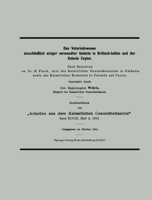 7. Das Veterinärwesen Einschließlich Einiger Verwandter Gebiete in Britisch-Indien Und Der Kolonie Ceylon