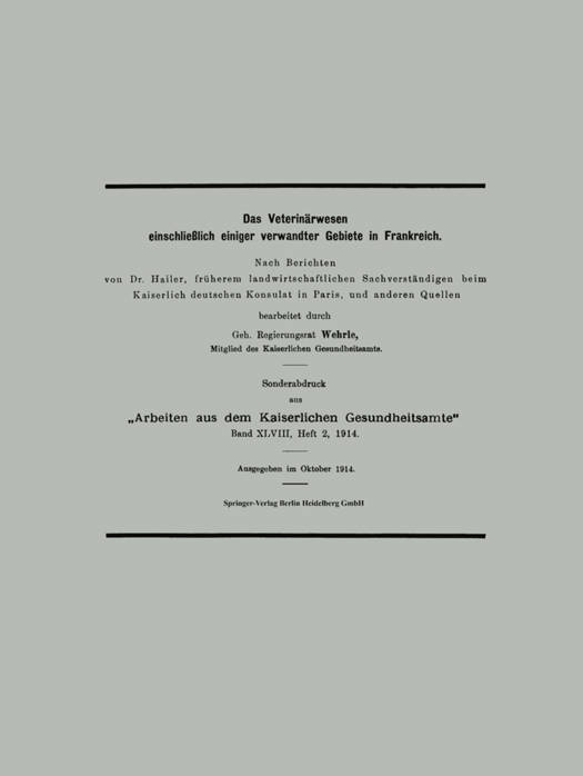 7. Das Veterinärwesen Einschließlich Einiger Verwandter Gebiete in Frankreich