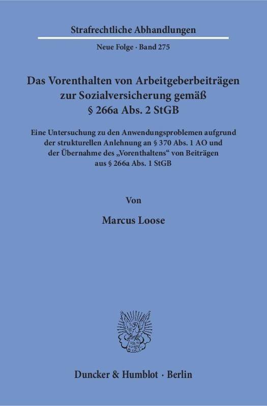 Obwohl von Arbeitgebern regelmäßig zugleich die Arbeitnehmer- und die Arbeitgeberbeiträge zur Sozialversicherung vorenthalten werden, existiert kein einheitlicher Straftatbestand für beide Beitragsteile. Während das Vorenthalten der Arbeitnehmeranteile in 266a Abs. 1 StGB geregelt ist, wird das Vorenthalten der Arbeitgeberanteile von dem im Jahr 2004 neu eingeführten 266a Abs. 2 StGB erfasst. Die Tatbestandsstruktur des Absatzes 2 wirft eine Reihe dogmatischer Fragen auf, da sie einerseits an die Steuerhinterziehung gemäß 370 Abs. 1 AO angelehnt ist, andererseits aber das Tatbestandsmerkmal des »Vorenthaltens« von Beiträgen aus 266a Abs. 1 StGB übernommen wurde. Die daraus resultierenden Anwendungsprobleme wurden im Rahmen der Untersuchung aufgearbeitet und konnten im Wege der Auslegung weitgehend gelöst werden. Allein im Bereich der beitragsstrafrechtlichen Selbstanzeige ist eine Reform zwingend erforderlich, für die ein eigener Regelungsvorschlag unterbreitet wurde.Die Arbeit wurde mit dem Dissertationspreis der »Alfred Teves-Stiftung« ausgezeichnet.