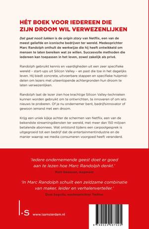 Dat gaat nooit lukken is de origin story van Netflix, een van de meest geliefde en iconische bedrijven ter wereld. Medeoprichter Marc Randolph onthult de methoden die hij heeft ontwikkeld om mensen te laten bereiken wat ze willen. Methoden die iedereen kan leren, in zaken en in het leven.