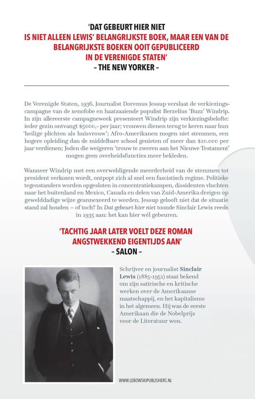 gewelddadige wijze geannexeerd te worden. Jessup gelooft niet dat de situatie stand zal houden - of toch? In Dat gebeurt hier niet toonde Sinclair Lewis reeds in 1935 aan: het kan hier wél gebeuren.