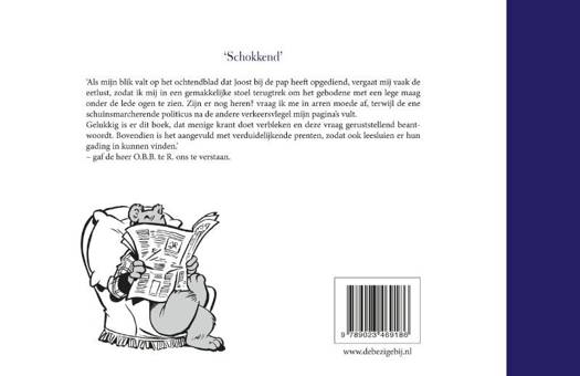 Als mijn blik valt op het ochtendblad dat Joost bij de pap heeft opgediend, vergaat mij vaak de eetlust, zodat ik mij in een gemakkelijke stoel terugtrek om het gebodene met een lege maag onder de lede ogen te zien. Zijn er nog heren? vraag ik me in arren moede af, terwijl de ene schuinsmarcherende politicus na de andere verkeersvlegel mijn paginas vult. Gelukkig is er dit boek, dat menige krant doet verbleken en deze vraag geruststellend beantwoordt. Bovendien is het aangevuld met verduidelijkende prenten, zodat ook leesluien er hun gading in kunnen vinden. gaf de heer O.B.B. te R. ons te verstaan.