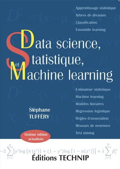 Ce traité pratique contient l’essentiel de ce qu’il faut savoir pour bien comprendre et bien appliquer les techniques du data mining et de la statistique décisionnelle. Dans cette 6e édition, au-delà des méthodes classiques que sont l’analyse factorielle, la régression linéaire, l’analyse discriminante de Fisher, la régression logistique, les arbres de décision, la classification automatique hiérarchique ou par partitionnement, les méthodes les plus récentes sont évoquées : régressions robustes, réseaux de neurones, séparateurs à vaste marge (support vector machines), algorithmes génétiques, gradient boosting, etc. Les questions techniques sont abordées avec la rigueur voulue, mais sans formalisme excessif. Les chapitres sont illustrés par de nombreux exemples, traités avec différents logiciels. L’un des avantages de cet ouvrage est de montrer par le menu et l’exemple comment le data mining s’insère dans une problématique d’entreprise, quels sont ses liens, d’une part avec l’informatique, d’autre part avec le marketing de bases de données ou d’autres commanditaires.