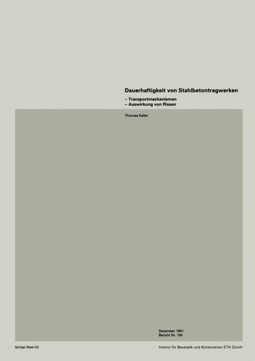 VORWORT Rissbildung ist bei Stahlbetontragwerken ein "natürliches" Phänomen. Sobald die Betonzug- festigkeit überschritten wird, entstehen Risse. Risse können selbst bei Breiten von etwa 0.5 mm belanglos sein; aber es ist auch möglich, dass sie bei kleinen Breiten unerwünschte Folgen haben oder sogar Anzeichen für eine unzu- reichende Tragsicherheit sind. Der verantwortungsbewusste Ingenieur überprüft deshalb beim Auftreten von Rissen immer, weshalb die Risse entstanden sind, ob sie unerwünschte Folgen haben, oder ob sie ein Anzeichen für irgendwelche Fehler in der Berechnung, Bemessung oder Ausführung sind. Der Einfluss der Risse auf die Korrosion der Bewehrung bzw. die Dauerhaftigkeit des Trag- werkes ist ein altes, umstrittenes Thema. Selbstverständlich spielen diesbezüglich die Um- weltbedingungen eine wichtige Rolle; aber ein direkter Zusammenhang zwischen Rissbreite und Korrosion, unter Berücksichtigung der Umweltbedingungen, liess sich trotz aller Be- mühungen nie feststellen. Trotzdem messen immer noch viele Normen -u.a. auch die Norm SIA 162 -der Berechnung bzw. Beschränkung der Rissbreite eine zentrale Bedeutung bei. Dies führt unter Umständen zu einem unnötigen, unwirtschaftlichen Bewehrungsaufwand .. Es ist ganz offensichtlich, dass die Korrosion im Rissbereich vom Zusammenwirken zahlreicher Parameter abhängig ist. Mit Laborversuchen lassen sich zwar die Auswirkungen einzelner Parameter mit grosser Genauigkeit verfolgen, und es können auch entsprechende Berech- nungsmodelle entwickelt werden. Aber die Interaktion aller Parameter unter der Berück- sichtigung zeitabhängiger Phänomene, wie z.B. die Strukturänderung des Betons mit zu- nehmendem Alter, oder etwa die natürlichen Feuchtigkeitszyklen, lassen sich zur Zeit noch nicht mit der erwünschten Zuverlässigkeit in Berechnungsmodellen erfassen.