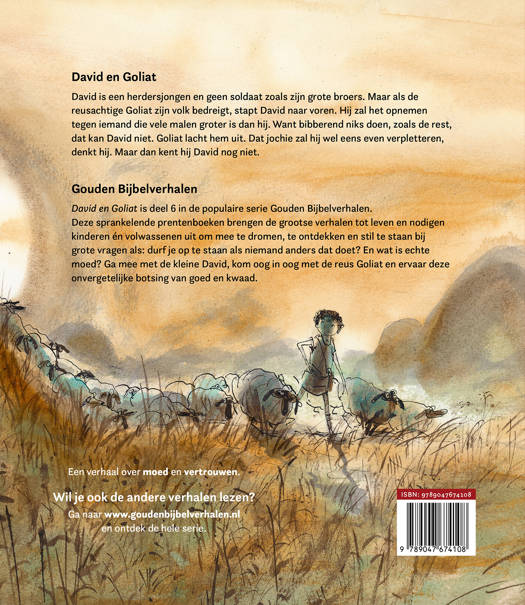 Gouden Bijbelverhalen David en Goliat is deel 6 in de populaire serie Gouden Bijbelverhalen. Deze sprankelende prentenboeken brengen de grootse verhalen tot leven en nodigen kinderen én volwassenen uit om mee te dromen, te ontdekken en stil te staan bij grote vragen als: durf je op te staan als niemand anders dat doet? En wat is echte moed? Ga mee met de kleine David, kom oog in oog met de reus Goliat en ervaar deze onvergetelijke botsing van goed en kwaad.
