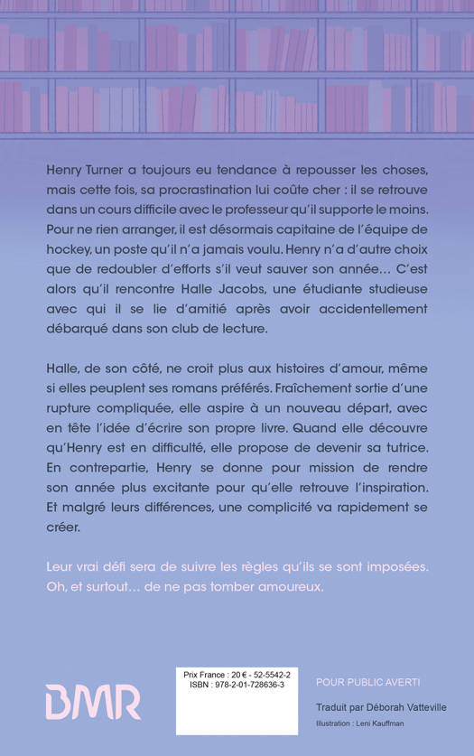Henry Turner a toujours eu tendance à repousser les choses, mais cette fois, sa procrastination lui coûte cher : il se retrouve dans un cours difficile avec le professeur qu'il supporte le moins. Pour ne rien arranger, il est désormais capitaine de l'équipe de hockey, un poste qu'il n'a jamais voulu. Henry n’a d'autre choix que de redoubler d'efforts s'il veut sauver son année… C'est alors qu'il rencontre Halle Jacobs, une étudiante studieuse avec qui il se lie d'amitié après avoir accidentellement débarqué dans son club de lecture.