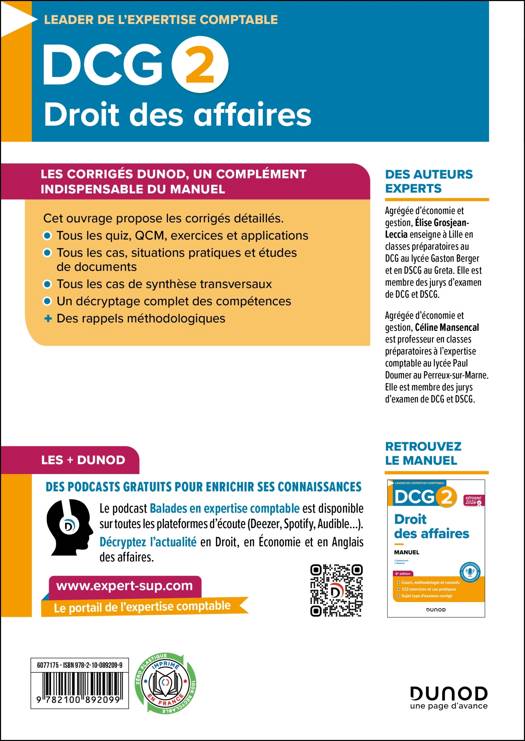 Retrouvez les corrigés détailles du manuel  DCG 2 - Droit des affaires - Réforme 2026-2027