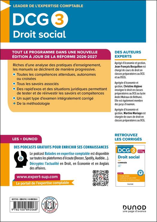 Tout le programme dans une nouvelle édition, à jour de la réforme 2026-2027 !Développez une vision employeur renforcée grâce à la réunion des notions de droit du travail et de protection sociale et recentrez-vous sur l’analyse de situations professionnelles.