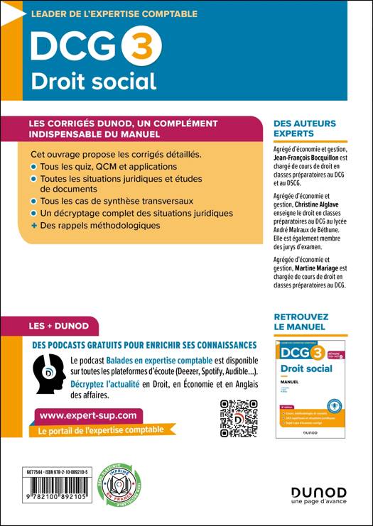 Retrouvez les corrigés détailles du manuel  DCG 3 - Droit social - Réforme 2026-2027