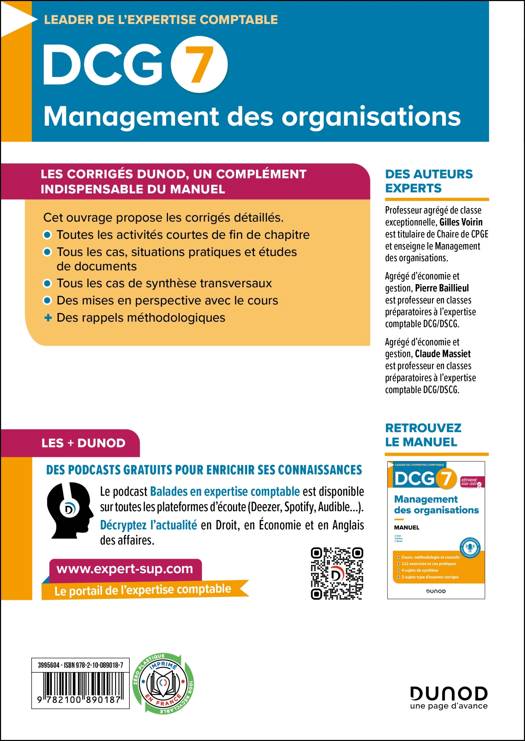 Retrouvez les corrigés détailles du manuel DCG 7 - Management des organisations - Réforme 2026-2027