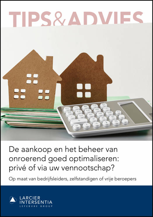 Dit Tips & Advies-Boek, met aangepaste cijfers en wetgeving die van toepassing is voor inkomstenjaar 2026, is de ideale leidraad om na te gaan of u een onroerend goed het best in naam van uw vennootschap of in persoonlijke naam koopt. Belangrijk uitgangspunt is het gebruik van het onroerend goed. We bekijken ook of u gebouwen die u al bezit niet beter aan uw vennootschap overdraagt en hoe u dit doet.
