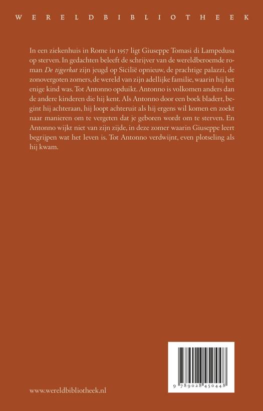 In een ziekenhuis in Rome in 1957 ligt Giuseppe Tomasi di Lampedusa op sterven. In gedachten beleeft de schrijver van de wereldberoemde roman De tijgerkat zijn jeugd op Sicilië opnieuw, de prachtige palazzi, de zonovergoten zomers, de wereld van zijn adellijke familie, waarin hij het enige kind was. Tot Antonno opduikt. Antonno is volkomen anders dan de andere kinderen die hij kent. Als Antonno door een boek bladert, begint hij achteraan, hij loopt achteruit als hij ergens wil komen en zoekt naar manieren om te vergeten dat je geboren wordt om te sterven. En Antonno wijkt niet van zijn zijde. Hij is als de albatros die de kapitein niet in de steek laat, zelfs niet als hij pech heeft. Tot Antonno even plotseling als hij kwam, verdwijnt.