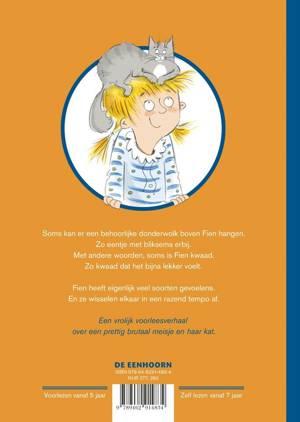 Vrolijke verhalenbundel boordevol illustraties. Om zelf te lezen of om voor te lezen. Vanaf 5 jaar (voorlezen) en 7 jaar (zelf lezen). Een vrolijk (voor)leesverhaal over een prettig brutaal meisje en haar kat. Soms kan er een behoorlijke donderwolk boven Fien hangen. Zo eentje met bliksems erbij. Met andere woorden, soms is Fien kwaad. Zo kwaad dat het bijna lekker voelt. Fien heeft eigenlijk veel soorten gevoelens. En ze wisselen elkaar in een razend tempo af. Samen met haar vriendje Pip beleeft ze een erg leuke dag, of toch niet?
