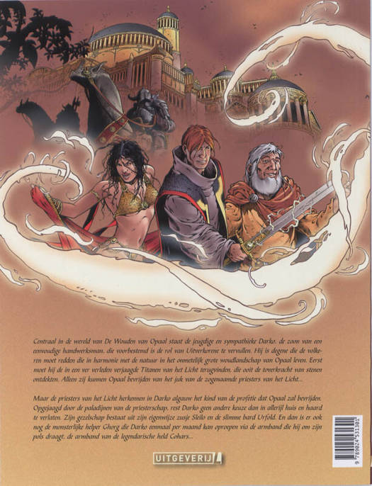 De held in het onmetelijke grote woudlandschap van de wereld van Opaal heet Darko. Hij is de zoon van een eenvoudige gelasblazer die, zo wordt algauw duidelijk, is voorbestemd in de rol van Uitverkorene de wereld van de wouden voor groot onheil te behoeden. op zijn schouders rust allereerst de zware taak de volkeren die in de wouden van Opaal in harmonie met de natuur leven te bevrijden van het juk en de tirannie van de zogeheten Priesters van het Licht. Gesteund door een knappe danseres en een moordzuchtig wezen gaat Darko op pad om de Vijf koninkrijken voorgoed te bevrijden van de fanatieke onderdrukker. Avontuurlijk en episch zeer sterk, zo begint De wouden van Opaal, een meesterwerk in wording waarvan het laatste deel nog lang niet is geschreven en getekend.