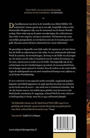DE ARME VERKWISTER is een nog niet eerder vertaalde, magistrale psychologische ontwikkelingsroman uit 1936, geschreven door een schrijver op de vlucht voor de nazi's - zijn werk was in Duitsland verboden. Net als zijn laatste roman, het enkele jaren geleden voor het eerst in het Nederlands verschenen DE OOGGETUIGE, schreef Weiß DE ARME VERKWISTER in ballingschap in Parijs, waar hij in 1940 zelfmoord pleegde.
