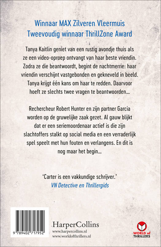 Rechercheur Robert Hunter en zijn partner Garcia worden op de gruwelijke zaak gezet. Al gauw blijkt dat er een seriemoordenaar actief is die zijn slachtoffers stalkt op social media en een verraderlijk spel speelt met hun fouten en verlangens. En dit is nog maar het begin…