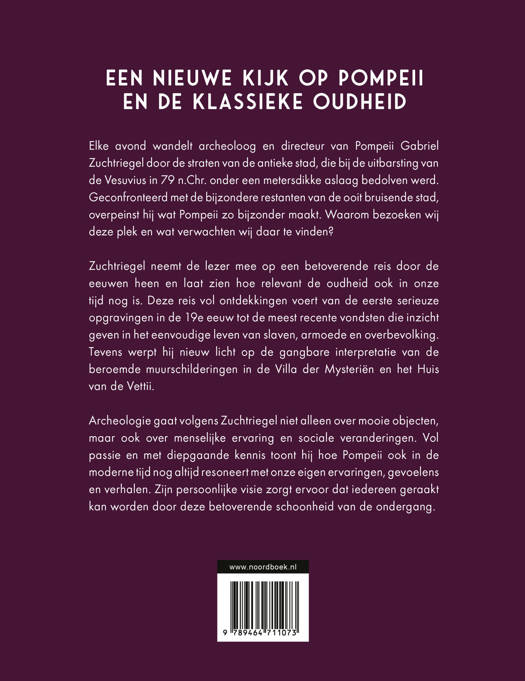Zuchtriegel neemt de lezer mee op een betoverende reis door de eeuwen heen en laat zien hoe relevant de oudheid ook in onze tijd nog is. Deze reis vol ontdekkingen voert van de eerste serieuze opgravingen in de 19e eeuw tot de meest recente vondsten die inzicht geven in het eenvoudige leven van slaven, armoede en overbevolking. Tevens werpt hij nieuw licht op de gangbare interpretatie van de beroemde muurschildering in de Villa der Mysteriën en het Huis van de Vettii.