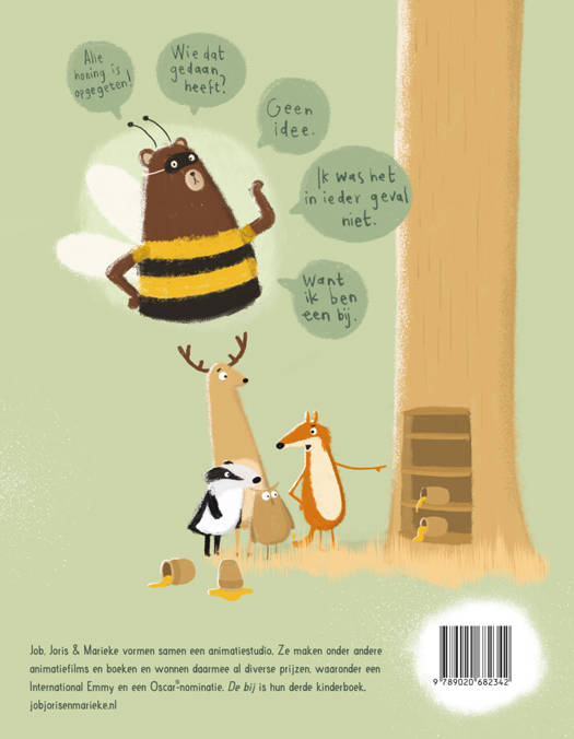 Hoi, ik ben Berend. En ik ben een bij. Ik doe altijd heel erg bij-achtige dingen en ik zie er ook uit als een bij. Kijk maar, ik heb vleugels, een angel en van die sprieten op mijn hoofd. En ik ben zwart met gele strepen. Of is het nou geel met zwarte strepen? Nou ja, dat doet er niet toe. Ik ben duidelijk een bij. Vanochtend waren alle dieren in rep en roer, want hun honing is gestolen. Erg, hè? Wie doet er nou zoiets? Ik was het in ieder geval niet. Want ik ben een bij.