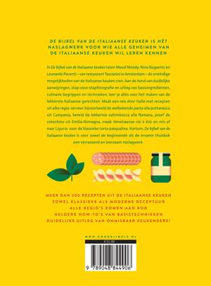 In De bijbel van de Italiaanse keuken laten Maud Moody, Nina Bogaerts en Leonardo Pacenti - van restaurant Toscanini in Amsterdam - de oneindige mogelijkheden van de Italiaanse keuken zien. Aan de hand van duidelijke aanwijzingen, stap-voor-stapfotografie en uitleg van basisingrediënten, culinaire begrippen en technieken, leer je alles over het maken van de lekkerste Italiaanse gerechten. Maak een reis door Italië met recepten uit elke regio: serveer bijvoorbeeld de welbekende pasta alla puttanesca uit Campania, bereid de lekkerste saltimbocca alla Romana, proef de cotechino uit Emilia-Romagna, maak Venetiaanse risi e bisi en reis af naar Liguria voor de klassieke torta pasqualina. Kortom, De bijbel van de Italiaanse keuken is voor zowel de beginnende als de ervaren thuiskok een verrassend en leerzaam naslagwerk.
