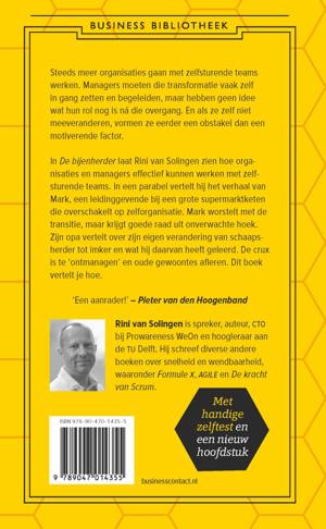 In ‘De bijenherder’ laat Rini van Solingen zien hoe organisaties en managers effectief kunnen werken met zelfsturende teams. Managers moeten die transformatie naar zelfsturende teams vaak zelf in gang zetten en begeleiden, maar hebben geen idee wat hun rol nog is ná die overgang. En als ze zelf niet meeveranderen, vormen ze eerder een obstakel dan een motiverende factor. In een parabel vertelt van Solingen het verhaal van Mark, een leidinggevende bij een grote supermarktketen die overschakelt op zelforganisatie. Mark worstelt met de transitie, maar krijgt goede raad uit onverwachte hoek. Zijn opa vertelt over zijn eigen verandering van schaapsherder tot imker en wat hij daarvan heeft geleerd. De crux is te ‘ontmanagen’ en oude gewoontes afleren. Dit boek vertelt je hoe.