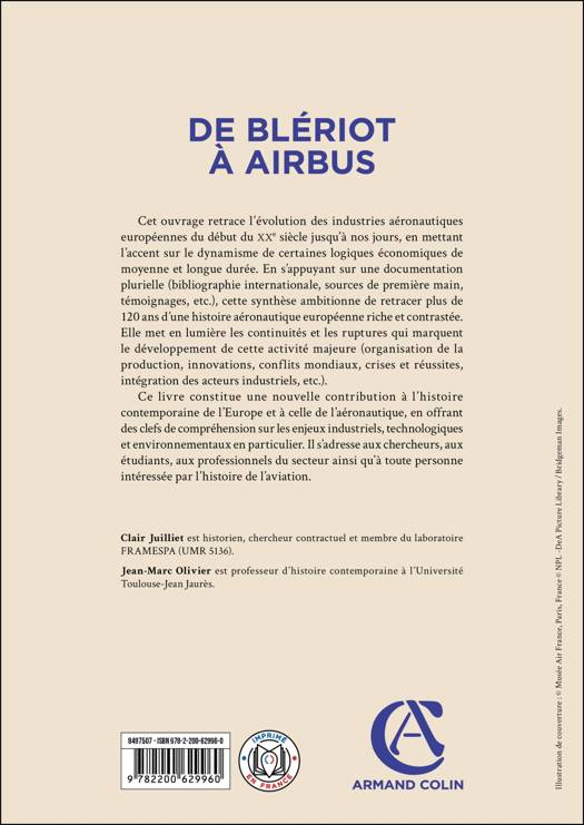 Cet ouvrage retrace l’évolution des industries aéronautiques européennes du début du XXe siècle jusqu’à nos jours, en mettant l’accent sur le dynamisme de certaines logiques économiques de moyenne et longue durée. En s’appuyant sur une documentation plurielle (bibliographie internationale, sources de première main, témoignages, etc.), cette synthèse ambitionne de retracer plus de 120 ans d’une histoire aéronautique européenne riche et contrastée. Elle met en lumière les continuités et les ruptures qui marquent le développement de cette industrie majeure (organisation de la production, innovations, conflits mondiaux, crises et réussites, intégration des acteurs industriels, etc.). Ce livre constitue une nouvelle contribution à l’histoire contemporaine de l’Europe et à celle de l’aéronautique, en offrant des clefs de compréhension sur les enjeux industriels, technologiques et environnementaux en particulier. Il s’adresse aux chercheurs, aux étudiants, aux professionnels du secteur ainsi qu’à toute personne intéressée par l’histoire de l’aviation.