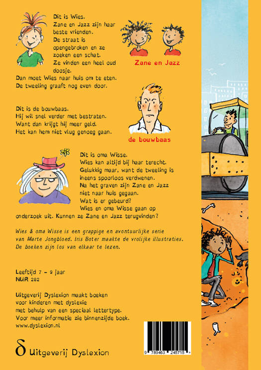 Oma Wisse. Wies kan altijd bij haar terecht. Gelukkig maar, want de tweeling is ineens spoorloos verdwenen. Na het graven zijn Zane en Jazz niet naar huis gegaan. Wat is er gebeurd? Wies en oma Wisse gaan op onderzoek uit. Kunnen ze Zane en Jazz terugvinden?
