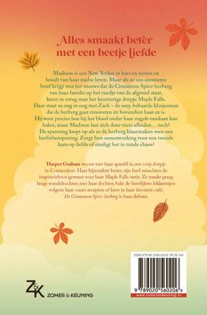 Madison is een echte New Yorker, maar ze keert terug naar het charmante Maple Falls om de vervallen Cinnamon Spice-herberg van haar familie te redden. Tot haar schrik, en misschien ook wel vreugde, blijkt de klusjesman die de boel moet opknappen niemand minder dan Zach: haar knappe, bebaarde ex die haar nog steeds razend kan maken. Terwijl de herberg langzaam transformeert voor de grote herfstheropening, laait ook de oude spanning tussen hen weer op. Krijgt hun samenwerking een romantisch vervolg, of eindigt het in totale chaos? ‘De Cinnamon Spice herberg’ is een cozy romance met een flinke dosis spice, ideaal voor de fans van Laurie Gilmore en Lucy Score!