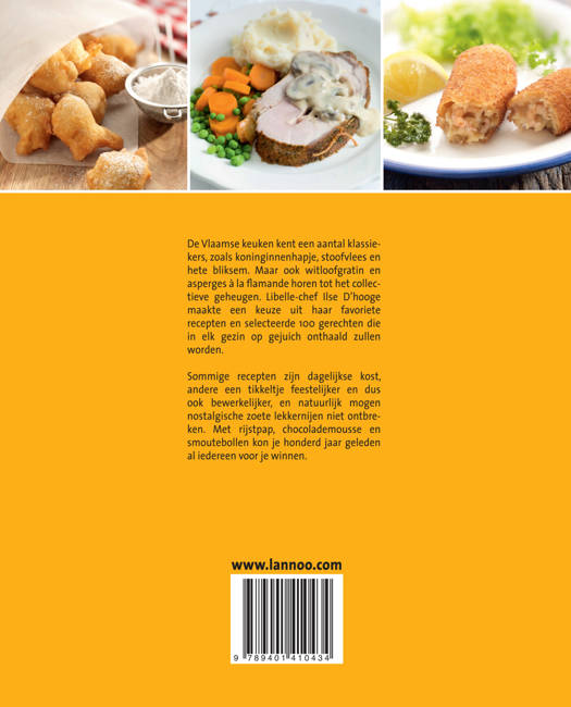 Verleidelijke Vlaamse kost uit de keuken van Libelle De Vlaamse keuken kent een aantal klassiekers, zoals stoofvlees, koninginnenhapje en hete bliksem. Maar ook witloofgratin en asperges à la flamande horen tot het collectieve geheugen. Libelle-chef Ilse D'hooge maakte een keuze uit haar favoriete recepten en selecteerde 100 gerechten die in elk gezin op gejuich onthaald zullen worden. Sommige recepten zijn dagelijkse kost, andere een tikkeltje feestelijker en dus ook bewerkelijker, en natuurlijk mogen nostalgische zoete lekkernijen niet ontbreken. Met rijstpap, chocolademousse en smoutebollen kon je honderd jaar geleden al iedereen voor je winnen.