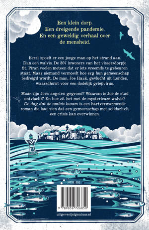 Maar zijn Joe’s angsten gegrond? Waarom is Joe de stad ontvlucht? En hoe zit het met de mysterieuze walvis? De dag dat de walvis kwam is een hartverwarmende roman die laat zien dat een gemeenschap een crisis kan overwinnen met solidariteit.
