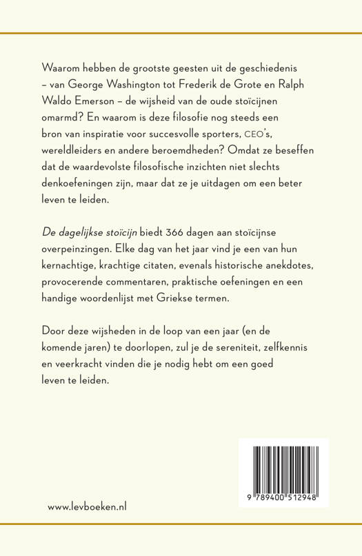 Waarom hebben de grootste geesten uit de geschiedenis – van George Washington tot Frederik de Grote en Ralph Waldo Emerson – de wijsheid van de oude stoïcijnen omarmd? En waarom is deze filosofie nog steeds een bron van inspiratie voor succesvolle sporters, ceo’s, wereldleiders en andere beroemdheden? Omdat ze beseffen dat de waardevolste filosofische inzichten niet slechts denkoefeningen zijn, maar dat ze je uitdagen om een beter leven te leiden.